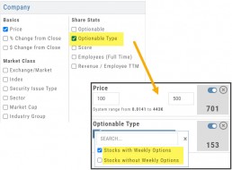 The Screener – located under the Find Tab – now provides the ability to screen for Weekly Options.